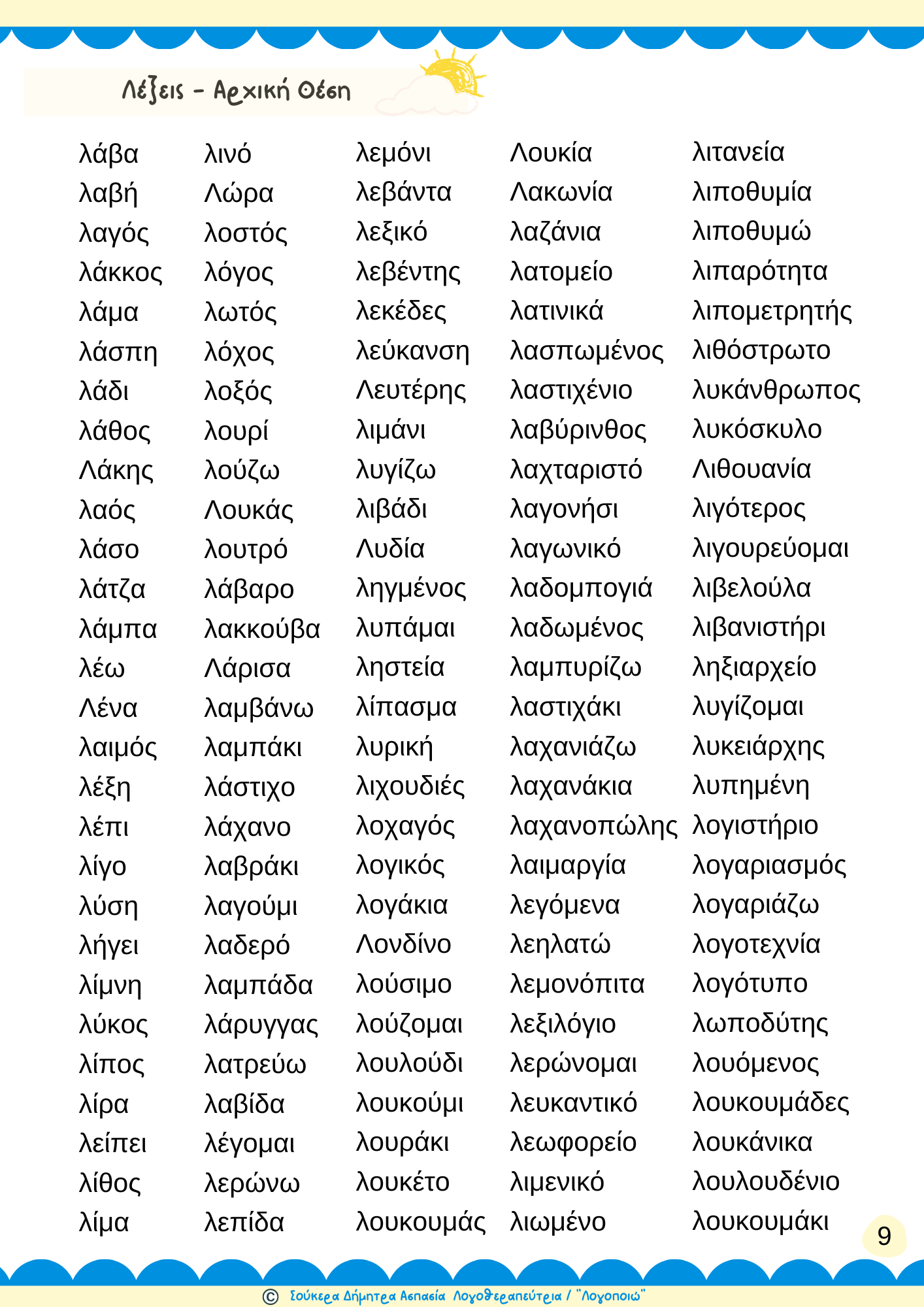 Θεραπευτικό Υλικό για την άρθρωση του φωνήματος Λ